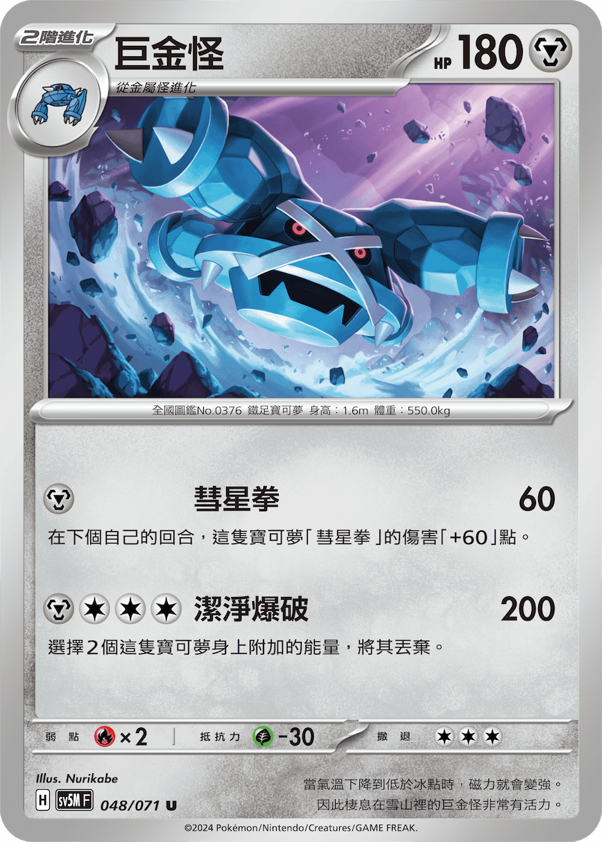 在自己的回合时可使用1次。查看自己的牌库上方4张卡,从其中选择任意数量的「基本【钢】能量」卡,以任意方式附于自己的宝可梦身上。将剩余卡全部翻回反面并重洗,放回牌库下方。